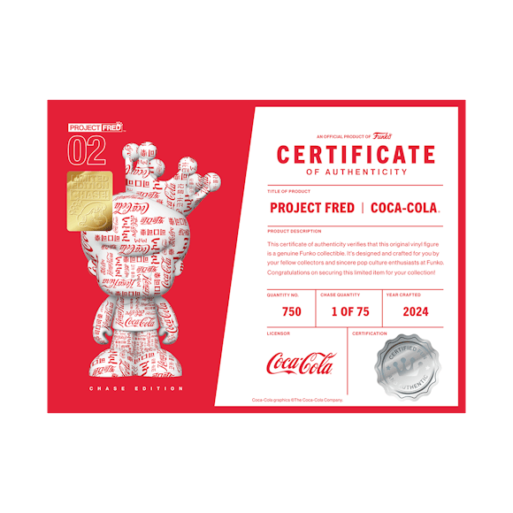Welcome to Project Fred, where Funko’s mascot, Freddy, personifies some of the most iconic pop-culture brands. Bring your collection into the future while connecting it to the core icons, brands, and moments that sparked your collection in the first place. This edition of Project Fred features Freddy Funko personifying Coca-Cola®. This 11-inch-tall collectible is a substantial and sophisticated addition to a premium collector’s display. There’s a 1 in 10 chance you’ll find the chase version of Freddy in an alternate deco featuring the company name in a variety of languages. Only 750 of this hard vinyl collectible were made and verified with a certificate of authenticity, which makes its addition to your set a cherished specialty.