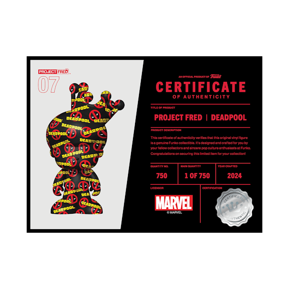 This edition of Project Fred features Freddy Funko personifying Marvel’s Deadpool. This 11-inch-tall collectible is a substantial and sophisticated addition to a premium collector’s display. Only 750 of this hard vinyl collectible were made and verified with a certificate of authenticity, which makes its addition to your set a cherished specialty. Now it’s your chance to bring together your collection with the Deadpool edition of Project Fred collectible.