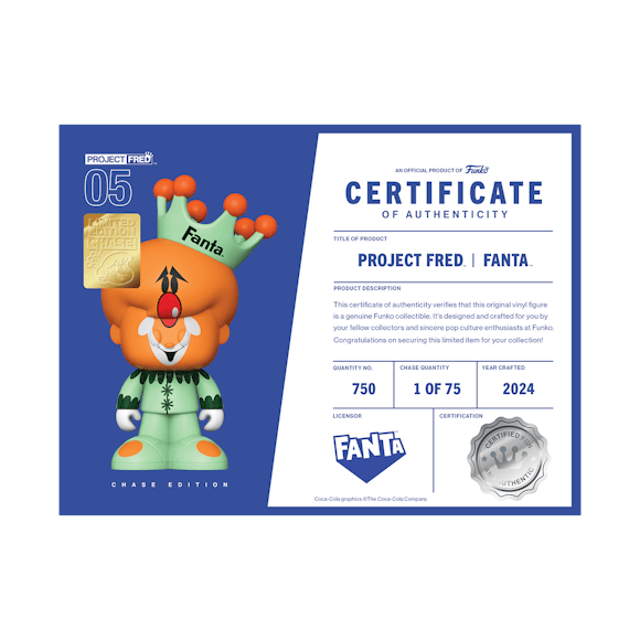 This edition of Project Fred features Freddy Funko personifying Fanta®. This 11-inch-tall collectible is a substantial and sophisticated addition to a premium collector’s display. There’s a 1 in 10 chance you’ll find the chase version of Freddy in an alternate Fanta Clown design based on the mascot from 1960s printed ads. Only 750 of this hard vinyl collectible were made, verified with a certificate of authenticity, making it a cherished addition to your set. Now it’s your chance to bring together your collection with the Fanta edition of Project Fred figure.