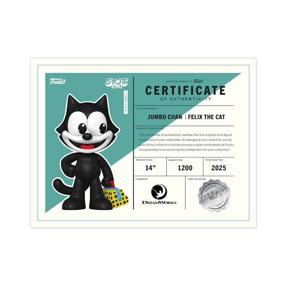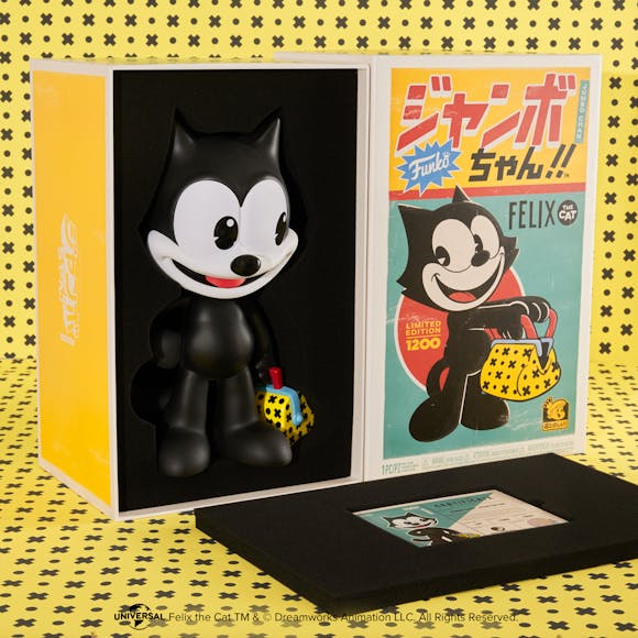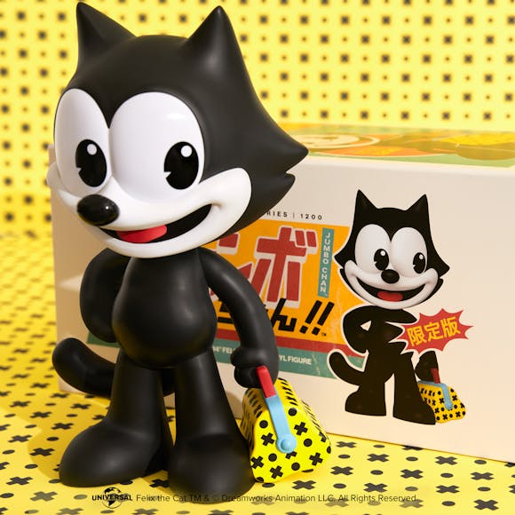 Jumbo Chan Felix The Cat has his bag of tricks in hand, ready to chase after adventure and never let anything get in his way. This “wonderful, wonderful cat” is sure to make hearts go “pit-a-pat” as a premium vinyl figure for your collection.